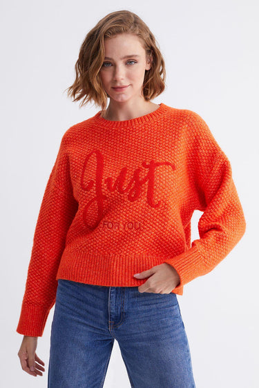 Crew Neck Slogan Knitwear Skirt