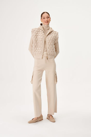 Beige Knitwear Cargo Trousers with Pocket Detail