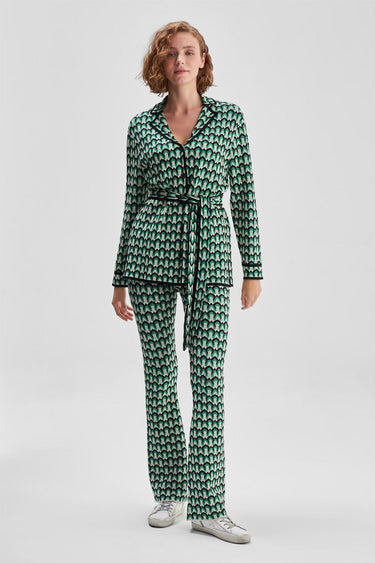 Geometric Patterned Wide Leg Green Knitwear Trousers
